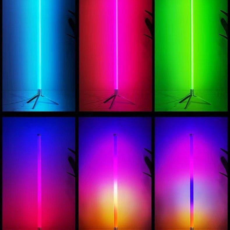 Lampe de sol d’angle LED RGB moderne avec télécommande et effets lumineux dynamiques