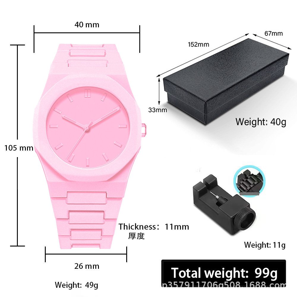 Affirmez votre style avec notre collection de montres au design monochrome et minimaliste. Conçue pour ceux qui apprécient l’esthétique épurée, cette montre se distingue par son boîtier et son bracelet intégrés en polycarbonate, offrant une légèreté exceptionnelle (46g) sans compromis sur la robustesse.