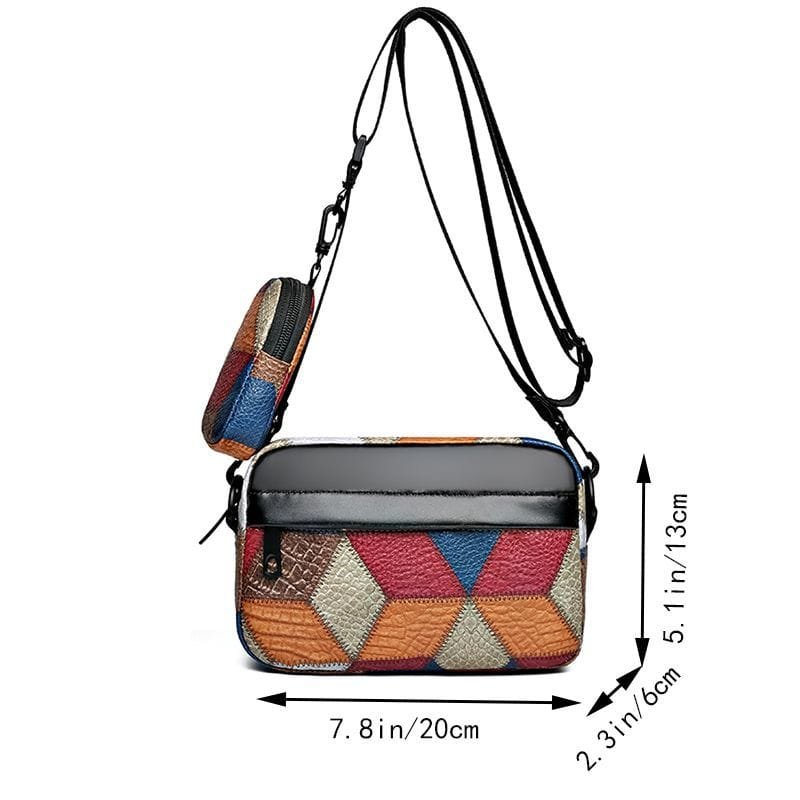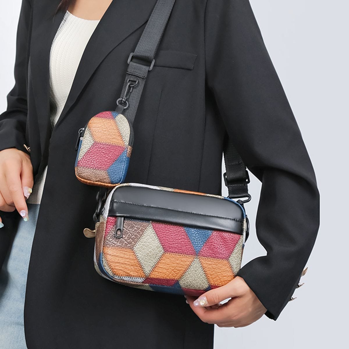 Sac bandoulière en similicuir à motif géométrique avec petite pochette amovible